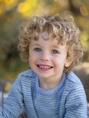 Joyful Child with Curly Hair in Nature - Happy Kids Portrait