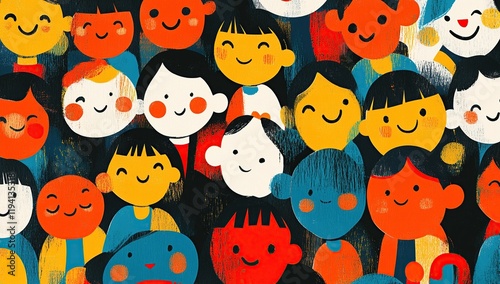 children, face, smiling, happy, children, colourful, crowd, oneness, vibrant, artwork, illustration, joy, happiness, positive, expression, art, painting, design, graphic, visual, image, cartoon, childhood, fun, playful, bright, cheerful, optimistic, whimsical, cute, adorable, sweet, innocent, peaceful, calm, content, relaxed, joyful