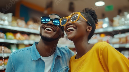 friends, shopping, happiness, laughter, joy, store, sunglasses, leisure, smile, companionship, fun, casual clothes, togetherness, vibrant, friendship, dynamic, playful, cheerful, sociable, urban life, lively, socialising, community, excitement, enjoyment, consumerism, fashion, connection, lifestyle, bright, camaraderie