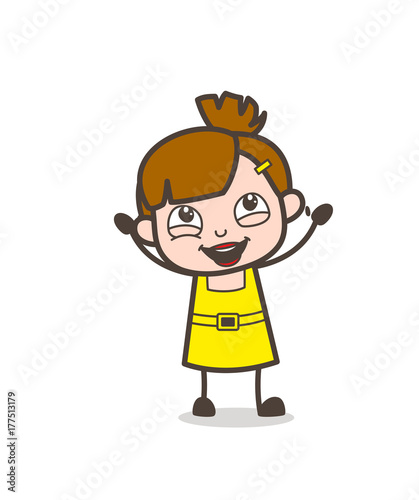 Joyful Kid Happy Hands Vector - Cute Cartoon Girl Vector
