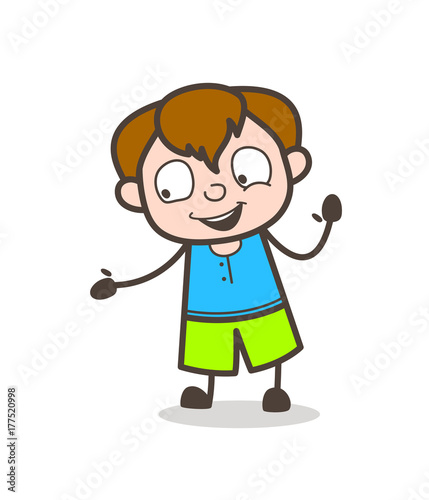 Joyful Little Kid Showing Hand - Cute Cartoon Boy Illustration
