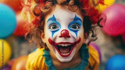 Joyful performer: cute children clown, young audiences with cheerful acts, balloon animals, playful tricks, happiness and excitement at parties and celebrations