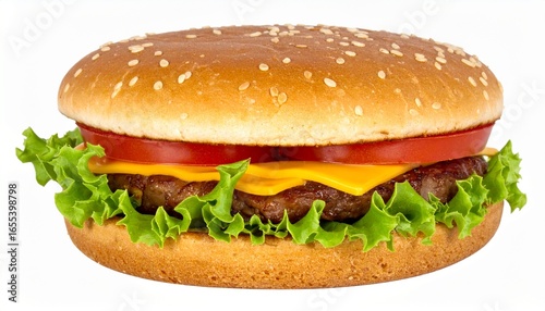 Juicy gourmet cheeseburger with fresh lettuce and tomato on a sesame seed bun
