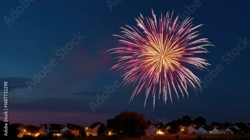 July 4th fireworks lighting up suburban neighborhood