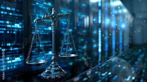 justice, law, legal, technology, server room, datum, digital, network, privacy, law and order, legal system, cyberspace, data protection, artificial intelligence, ai, server, computer, hardware, business, work, future, innovation, progress, modern, abstract, concept, background, blue, dark, light, blur, metallic, steel, balance, scale, symbol, icon, closeup
