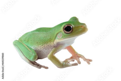 Juvenile White-lipped tree frog (Litoria infrafrenata) on white background, white-lipped tree frog (Litoria infrafrenata) closeup on isolated background