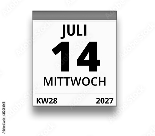 Kalender für Mittwoch, 14. JULI 2027 (Woche 28)