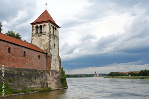 Kaunas Old Town Skyline: Historic Cityscape with Tower, Church, and River