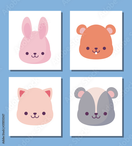 animal, cat, beaver, skunk, rabbit, cartoon, vector, face, expression, cute, emoticon, illustration, character, funny, design, fun, icon, different, children, eye, adorable, signs, art, anime, graphic, japan, childish, social, profile, facial, toy, love, style, clip art