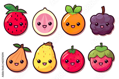 Kawaii beautiful fruits sticker image, in the style of kawaii art, meme art, isolated white background PNG