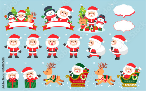 クリスマスイラスト kawaii サンタクロースChristmas set