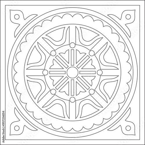 Kazakh national square black outline frame ornament. Ethnic pattern. Rectangle reflecting nomadic culture. Suitable for design and textiles.