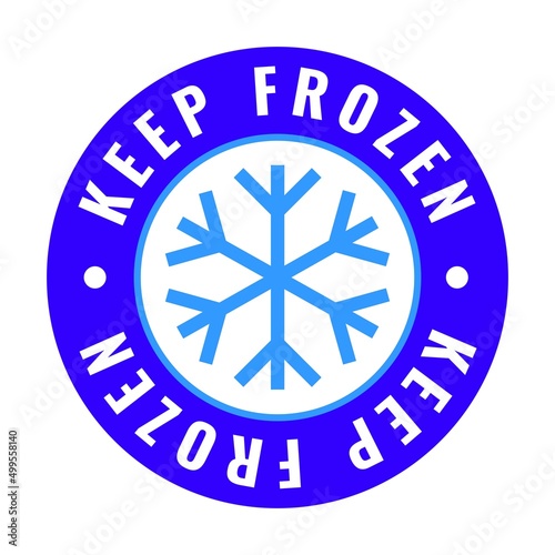 Keep frozen vector food product package label. Keep frozen in fridge, snowflake icon