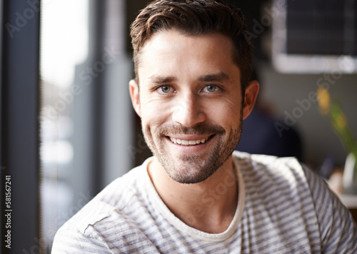 Keep up the positivity. Portrait of a smiling young man in a cafe.