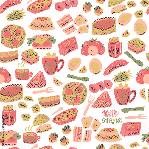 low carb, carb, nourishment, diet, dish, dish, fat, nubes, meal, protein, food, atkins, loss, healthy, meat, high, salmon, bacon, egg, bulletproof, hot drink, low, pattern, vector, background, cartoon, collection, concept, design, drawing, element, wallpaper, illustration, texture, wrapping, seamless, paper, endless, package, shape, retro