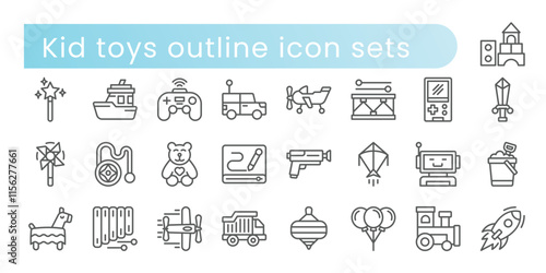 Kid toys outline icon sets