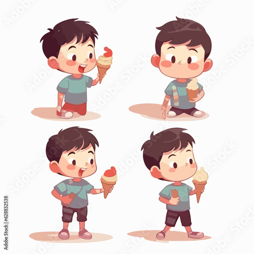 Kid with an ice-cream cone, vector pose, young kid, cartoon style.