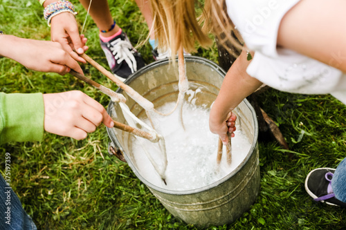 string, stick, soap, children, bucket, bubble, girl, female, person, people, children, children, children, preteen, preteen, preteen, teenage, youth, youth, youngster, youngster, minor