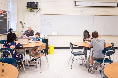 academy, african american, black, class, classroom, diverse, diversity, education, high school, indoor, indoor, inside, learn, learning, mask, people, person, school, shield, student, teaching