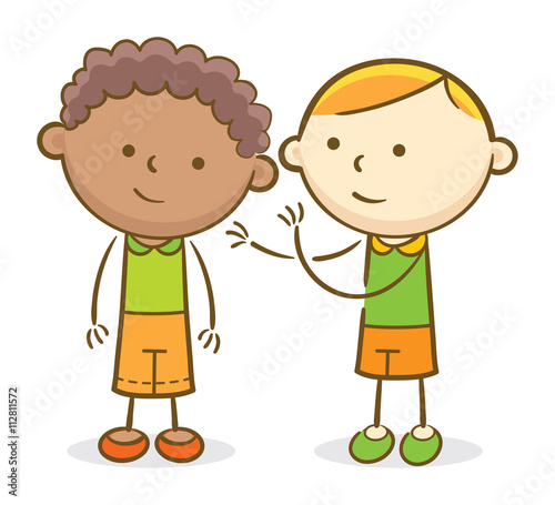 children, children, doodle, line art, cartoon, boy, whisper, whispering, gossip, secret, speak, rumour, listening, friendship, secrecy, vector, illustration, isolated