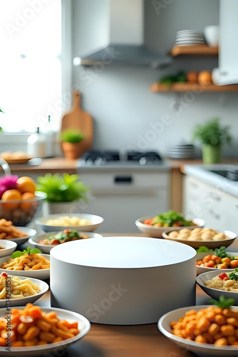 Kitchen Podium Display with Food. Ai Generated.