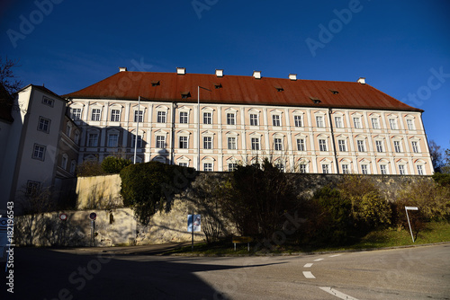 kloster, bauwerk, architektur, alt, historisch, geschichte, fremdenverkehr, reisen, mauer,strasse, baum, herbst, himmel, blau, geschichte, fenser, dach, rot, green, europa, stadt, religion, christentu