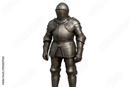 Knight suit of armor standing, full body protection, medieval warrior gear, ancient history, metal defense, transparent background