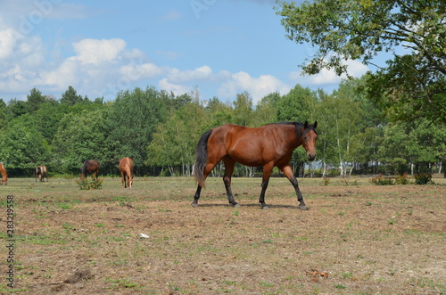 Konie na pastwisku latem