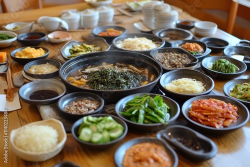 Korean dishes budae jjigae and galbitang served in clay pots