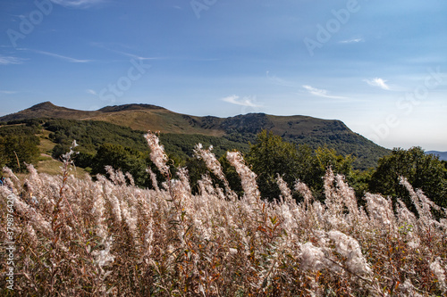 landscape, mountain, heaven, nature, grass, blue, hill, summer, cloud, green, rock, forest, tree, travel, panorama, garden, vale, view, meadow, desert, autumn
