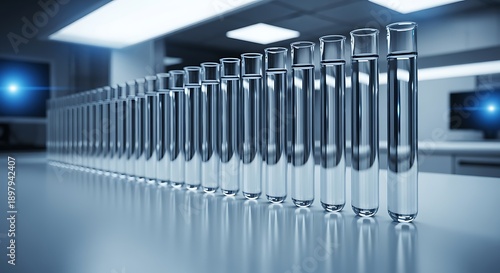 Laboratory Test Tubes in Modern Science Laboratory with Cool Blue Lighting