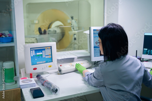 Lady doctor performing MRI scan on patient