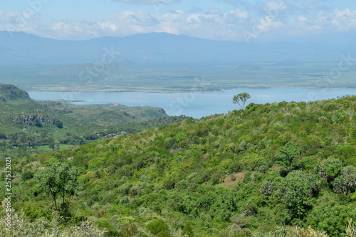 Lake Elementaita and Sleeping Warrior Hill seen from Table Mountain, Kenya