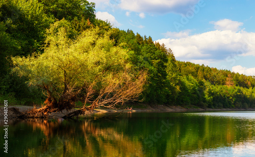 lake in the forest and a old tree - landscape in germany nrw wuppertalsperre