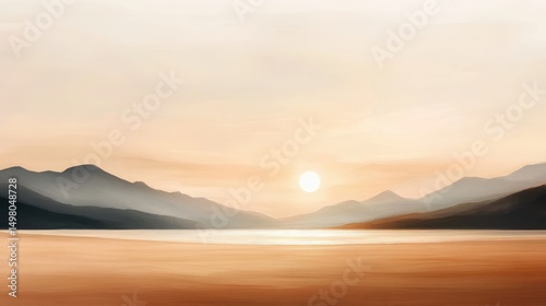 sunset, lake, landscape, mountain, water, sky, nature, sun, peaceful, scenery, horizon, dawn, evening, calm, light, scenic, tranquil, outdoors, view, panorama, serene, cloud, artistic, orange, grey, dark, day, painting, illustration, vista