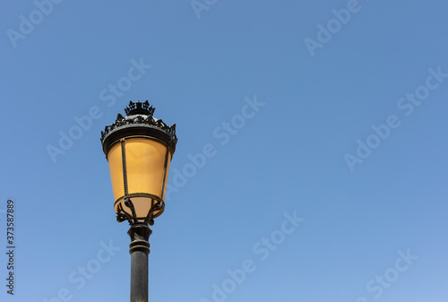 Lámpara antigua de la localidad de Betencuria, Fuerteventura, España. Cielo azul de fondo