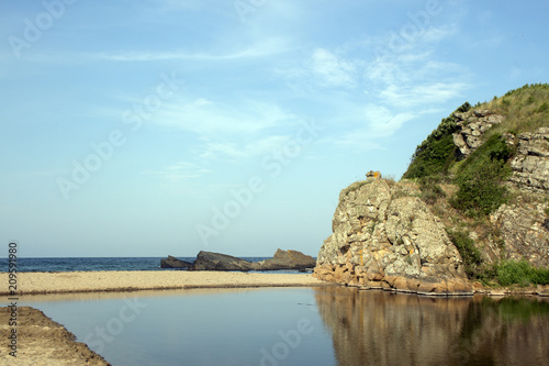 Landscape from the mouth of the River Rezovska and the Black Sea on the beach in Sinemorets, Bulgaria.