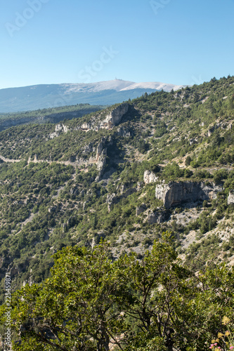Landscape in the department of Vaucluse in Provence and the Mont Ventoux in the background. France