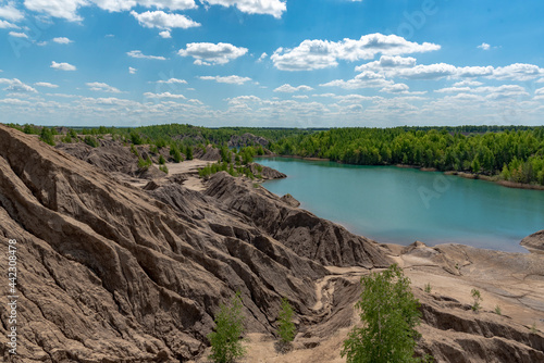 Landscape with blue lake and white clouds