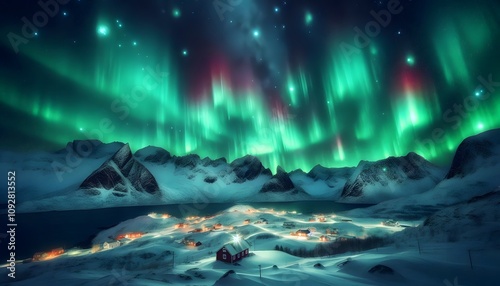 Landscape with northern lights