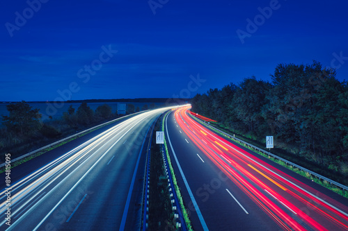 night, car, light, road, highway, traffic, motion, travel, transportation, city, speed, transport, street, sky, urban, dusk, long, trail, line, expressway, train, railway, rail, railroad, station, track, german, blurred, outdoors, marking, rural, tree, plant, exposure, direction, connection, motor, vehicle, nobody, pattern, illumination, bend, journey, dark, dramatic, driving, sun, cloud, sunrise