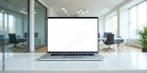 laptop in the office with an empty white screen