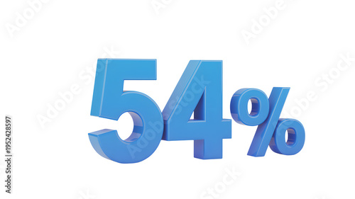 Large blue 54 percent sign on transparent background for statistics and discounts