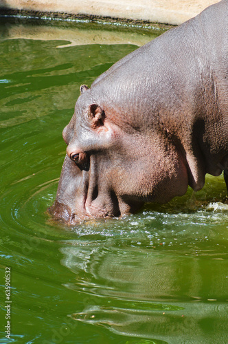 hippopotamus, mammal, animal, nature, one animal, large, water, sunny, herbivorous, swimming, sunlight, wet, drinking, swimming pool, swim, green