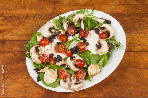Large Cottage Cheese Salad with Tomatoes; Raisins and Mushrooms