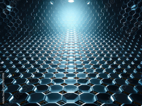 futuristic, hexagonal, bright light, metal, grid