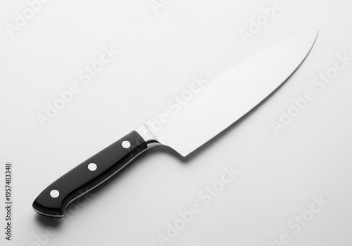 Large kitchen knife with black handle on white background