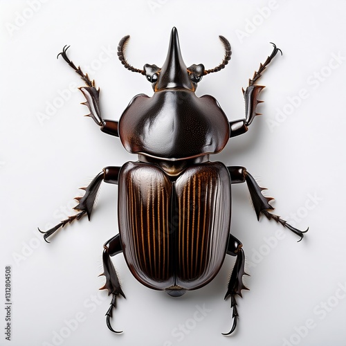 Large rhinoceros beetle displayed on a light background for educational purposes