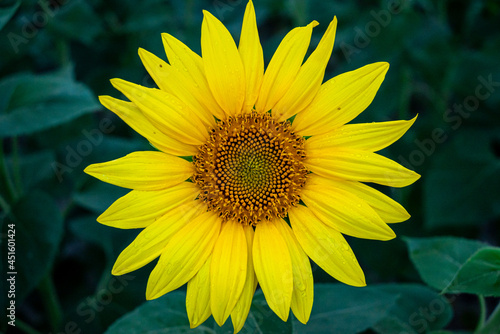 Large sunflower at summer with dark green background