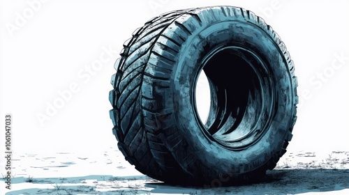 tire, rubber, wheel, vehicle, tread, automotive, black, grey, dark, heavy, big, huge, truck, car, machine, metal, transport, round, roundness, shape, texture, circular, object, sharpened, single, isolated, ground, detail, detailing, white, background, light, shadow, close, up, closeup, art, illustration, digital
